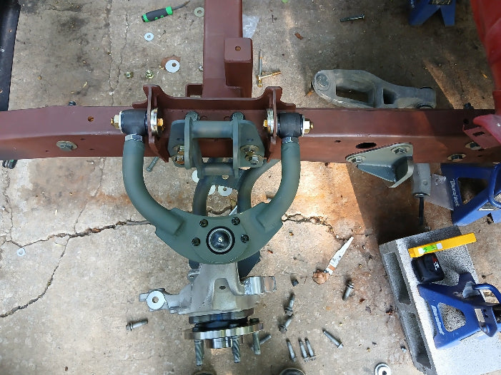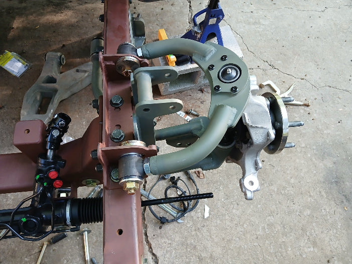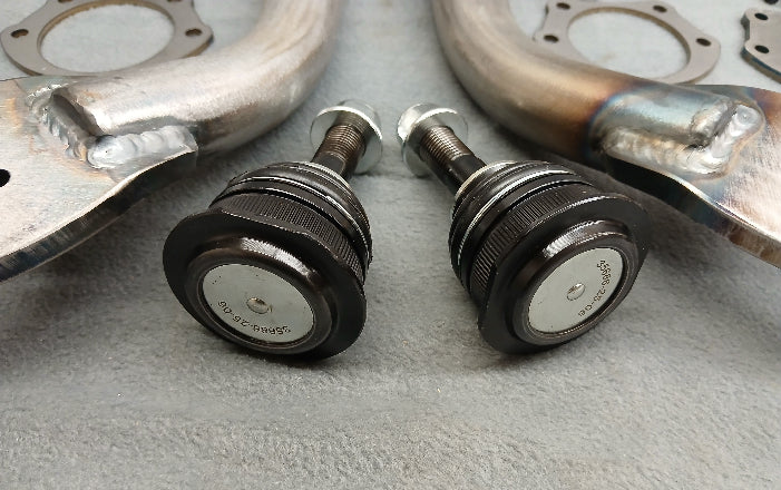 Start by test fitting before painting or powder coating. Install ball joints by setting down in the hole, installing the spacer which fits around the ball joint, then installing the hold plate down on top the ball joint. Then use the 8 screws, nuts and washers to tighten down the ball joint. On the rod ends, use anti seize. Blow out the tubes in case there are any small metal slivers or pieces left in there. We blow them out and then bang on the table and stuff still comes out so there is a chance some may be in there. After putting anti seize on the female and male threads, install the jamb nuts on the rod ends and screw them all the way in.