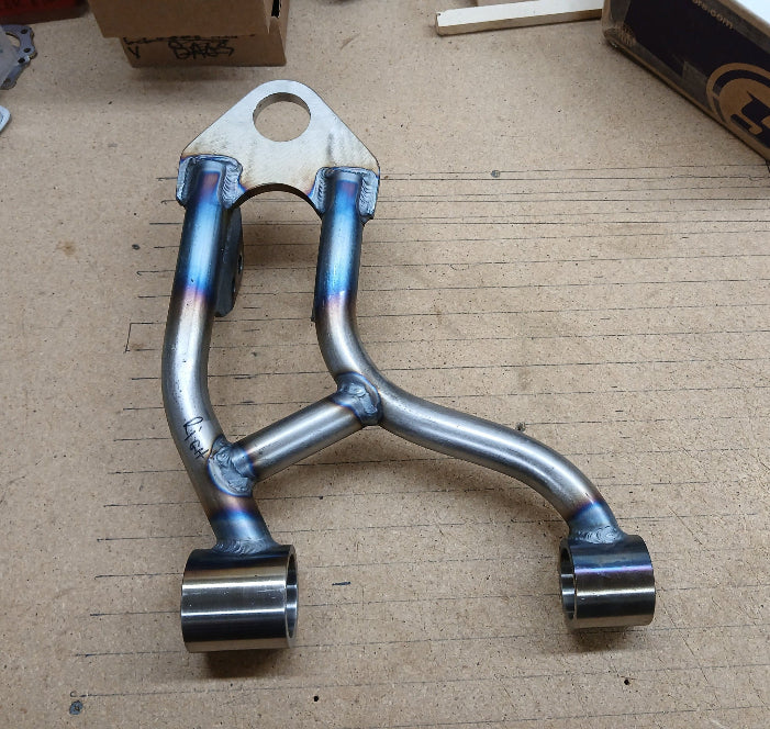 This is our newest lower control arm for the 03-11 Crown Vic aluminum subframe commonly swapped into Ford trucks and other vehicles. This is the version that eliminates the long rear tube. This one has an A shape and a rear bushing in line with the front main bushing. I have guys using these on my narrow crossmembers and in special projects where that long rear tube would be in the way. I don't even have any nice on the table pics of these with all they come with yet. I'll add that asap.