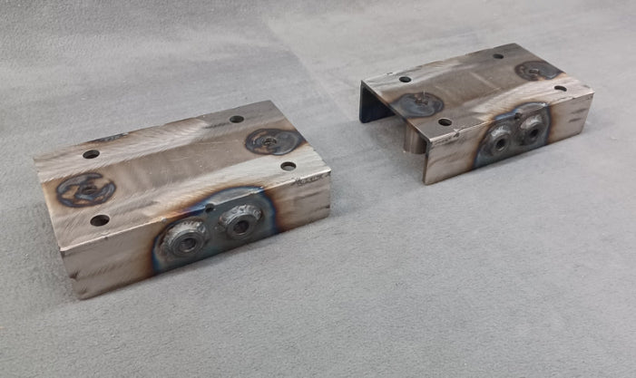 FRAME BOXES #630-57-60. These are the boxes that bolt to the frame where the original engine crossmember was. The main crossmember section bolts to these boxes. **** Pics are of the original style and the new style looks different. Updated pics soon ****